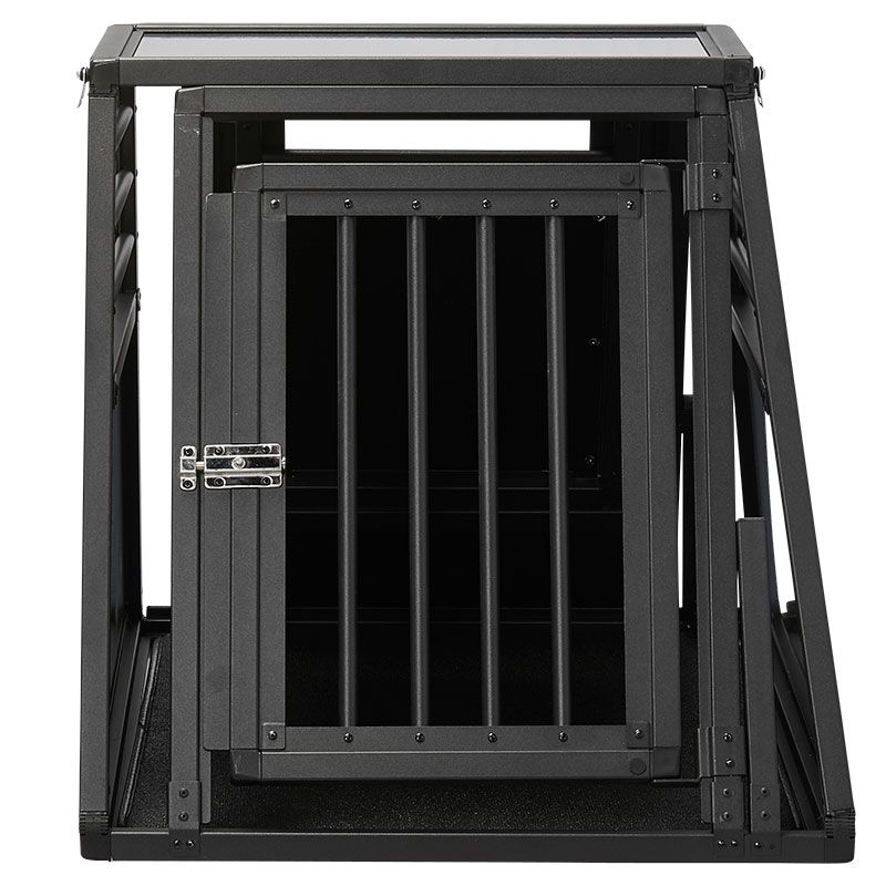 Ein platzsparendes Design, das für eine perfekte Nutzung des Kofferraums entwickelt wurde. Die extra robuste, schön gestaltete Hundebox steht stabil im Kofferraum des Autos und strahlt Qualität und Luxus aus. Mit Notausgang, Aluminiumtüren, robusten Aluminium-Verbundseiten, Schmutzmatte usw.