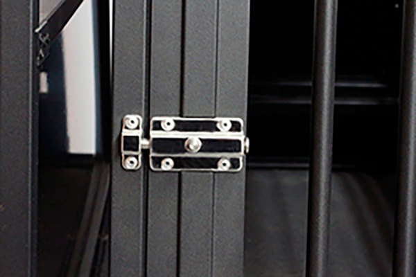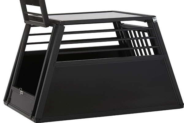 Sikkerhed frem for alt. Kraftig skydelås holder døren sikkert lukket under transport. Den er konstrueret så det er umuligt for hunden selv at åbne. Super nem betjening med kun 1 hånd - både når buret skal åbnes og lukkes.