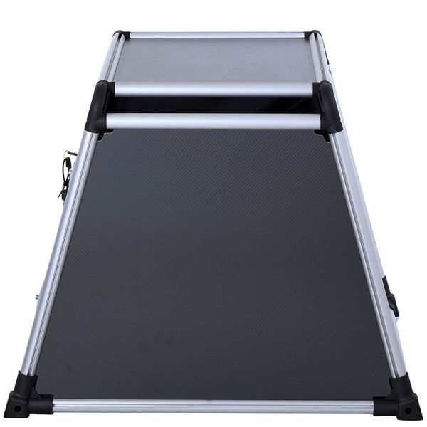 Die Gitter bestehen aus robusten Aluminiumprofilen, die sowohl stark als auch langlebig sind. Die Seiten haben eine hohe Dichte - das bedeutet, dass die Dichte der Holzfaserplatten hoch ist. Dies führt zu stärkeren Seiten, obwohl sie nicht dicker sind. Die Bodenplatte besteht aus Aluminiumverbund, um eine höhere Bruchfestigkeit im Vergleich zu Holz zu erreichen und sicherzustellen, dass sie stark genug ist, um das Gewicht des Hundes zu tragen.