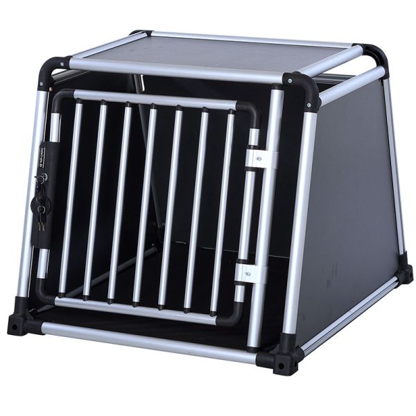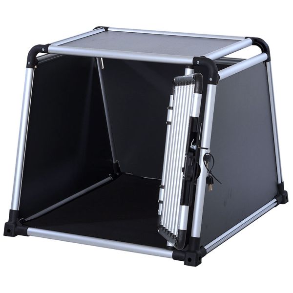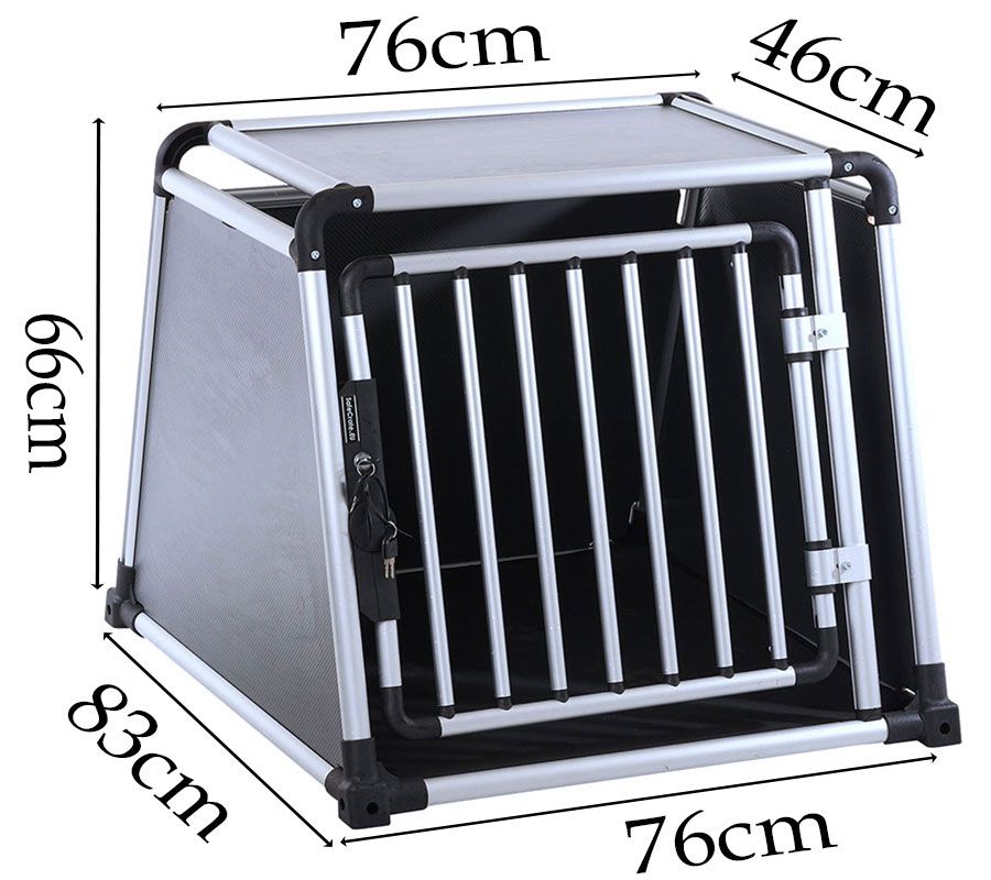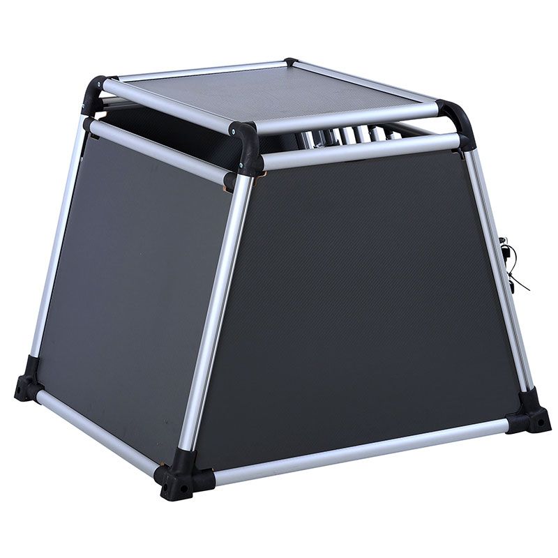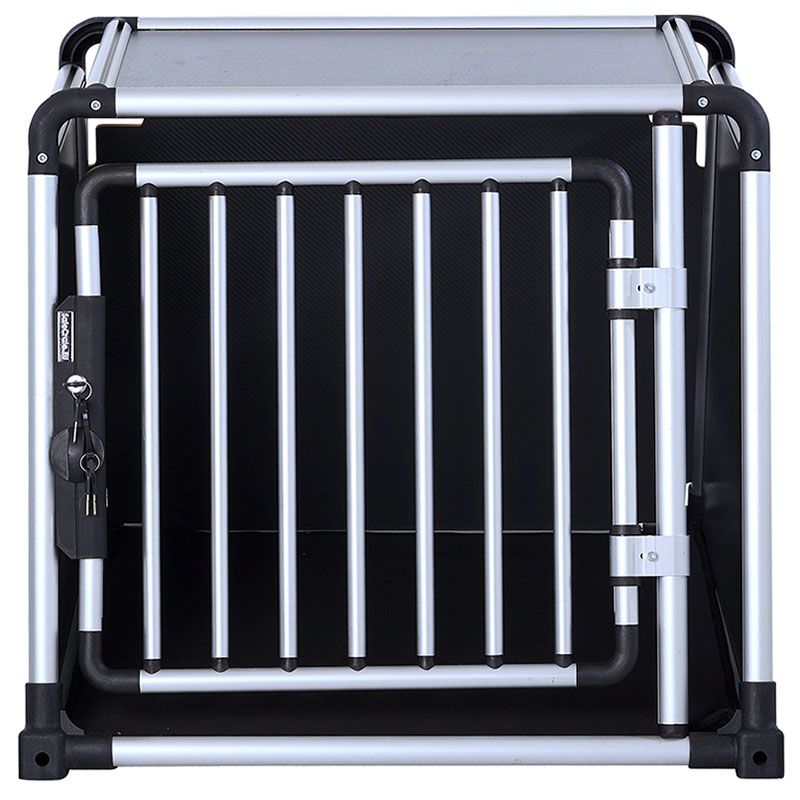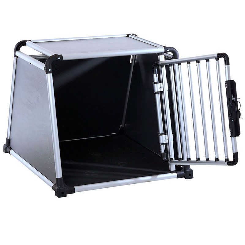 Diese sichere Elite Hundebox verfügt über verstärkte Seiten und extrem dicke Aluminiumprofile. Ein einfaches Einhand-Schloss, das gleichzeitig mit einem Schlüssel verschlossen werden kann.